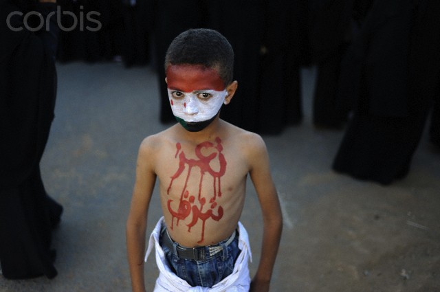 14 Nov 2011 — A Yemeni youth protest during a demonstration calling for Saleh to step down on 14 November 2011 in Sanaa, Yemen. Yemens authoritarian president, Ali Abdullah Saleh, agreed to step down amid a fierce uprising to oust him after 33 years in power. — Image by © Samuel Aranda/Corbis