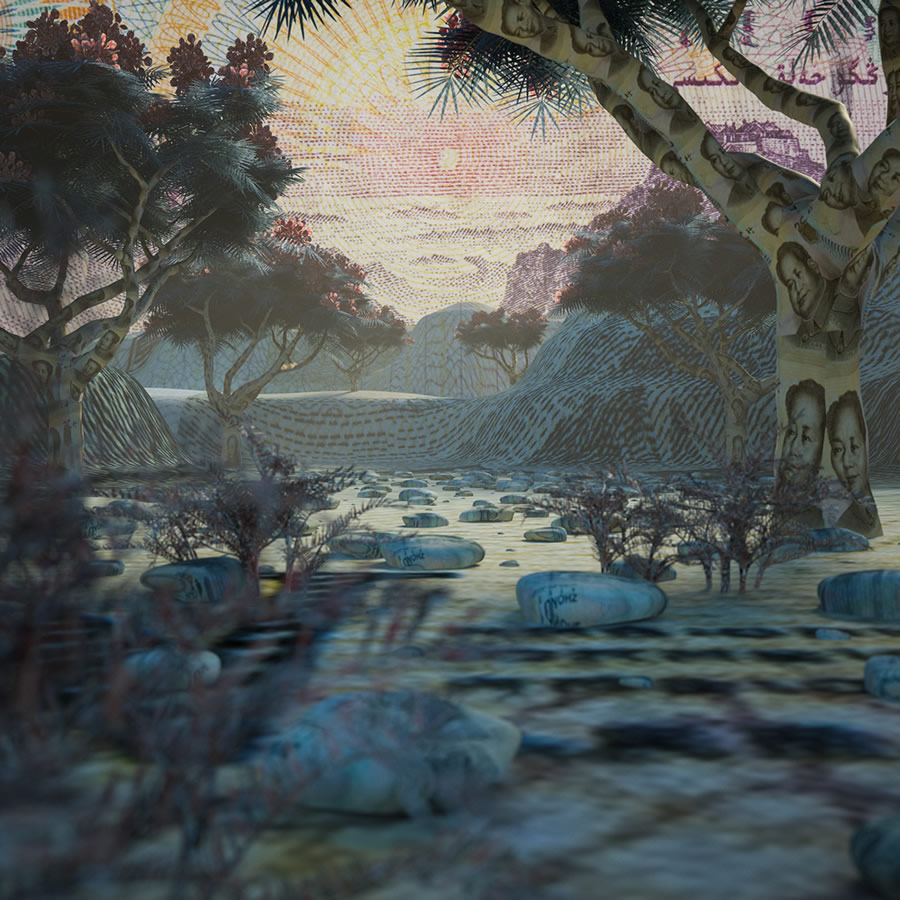 Today, the main features of the capitalist system are increasing. In this work, the artist could be talking to us the privatization of common goods and nature. It seems as if everything were mediated by money. This system and its objectives have increased the development of many patents on things as incredible as the human genome, medical uses of certain plants, plant or animal varieties, press the mouse button, artistic performances, etc.