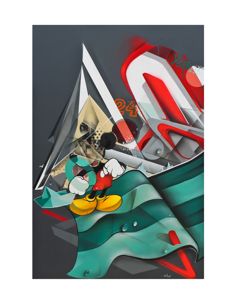 We can also emphasize his works in the field of fashion design, with its own brand, that he implemented to the urban clothing with several studies linked to the customization of various objects, including tennis shoes and some partnerships with brands like Vans, DC, Adidas and Quicksilver. He was also part of the organization of the first Quiksilver BowlRiders in Portugal. A special emphasis on his works at the exhibition ‘We Love Sneackers’, a partnership that was made exclusively with Adidas and Vans and that took place in Lisbon, we can highlight also his individual exposure at “FOR ALL SHAPES” , CLAIMNESS/Montanashop&gallery, STROKE URBAN ART FAIR BERLIN/MUNIQUE,for a artistic partnership with 1XRUN Detroit and some other projects recently developed with the urban Gallery GAU from the City Hall of Lisbon. There are still many projects in which Helio Bray was and continues to be involved, but let´s summarise that he is a real “versatile artist”.A special word for my Crews THUNDERS & LEGcrew.”