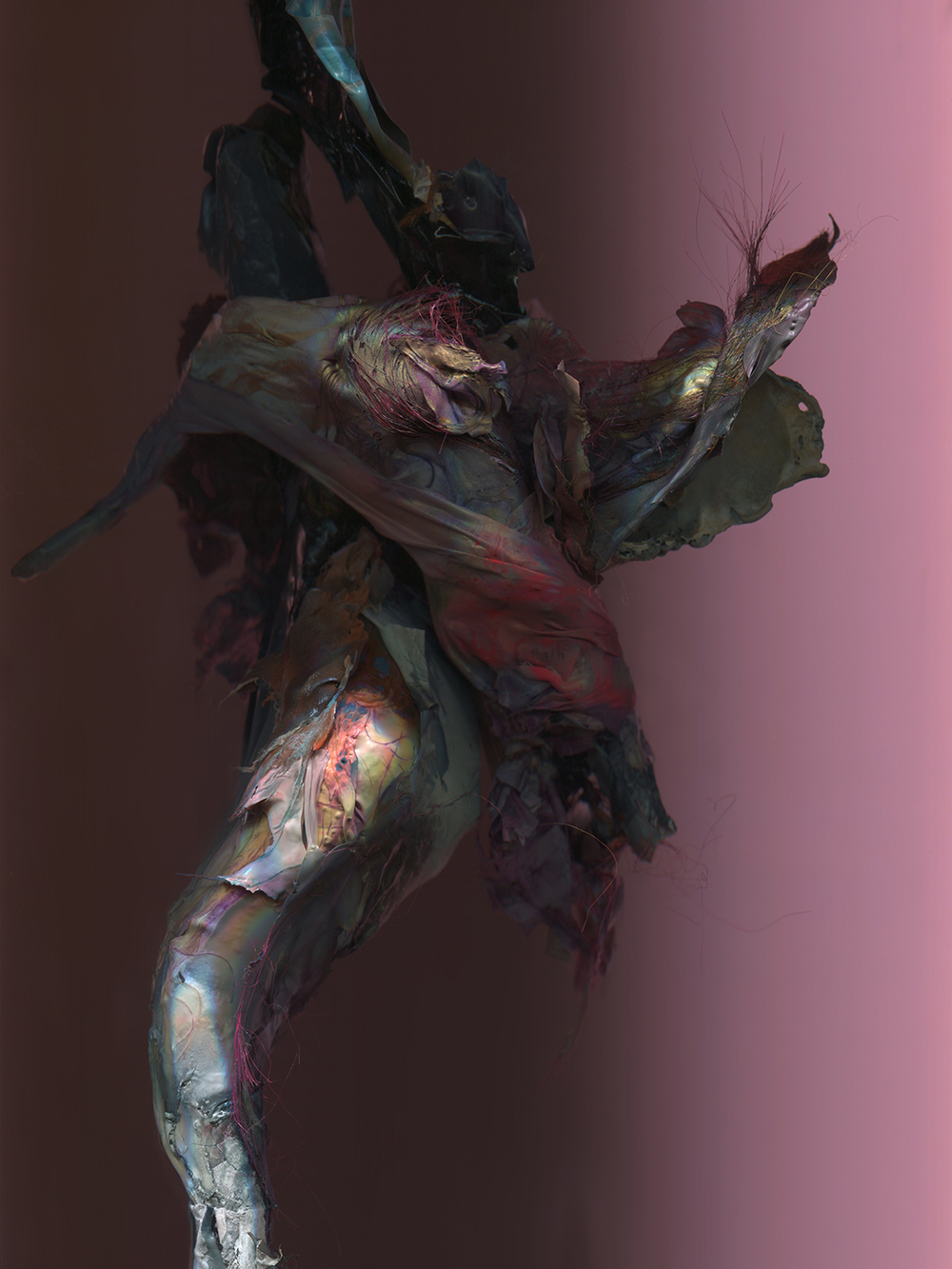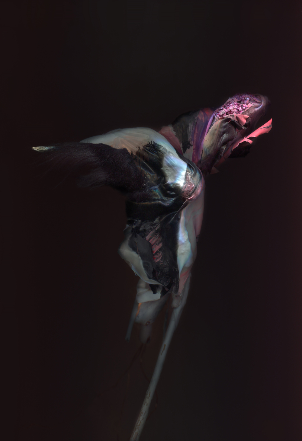 Kim Kei lives and works in Los Angeles. Her process begins with combining and altering everyday objects and natural debris. These malleable sculptures are photographed in several iterations, which become the foundation for her paintings. Her intricate, improvised compositions exist somewhere between representation and abstraction. Her work is a departure from the figure as a form, yet in its absence the body is implied.